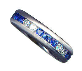 Platinum ring with sapphires and diamonds in a channel setting. As shown with approximately 1 carat of sapphires and ½ carat of diamonds.